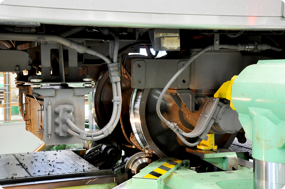 鉄道車両の車輪を、脱線防止と、お客さまの乗り心地向上のため、きれいな円心にする(削る)仕事を行っています。
