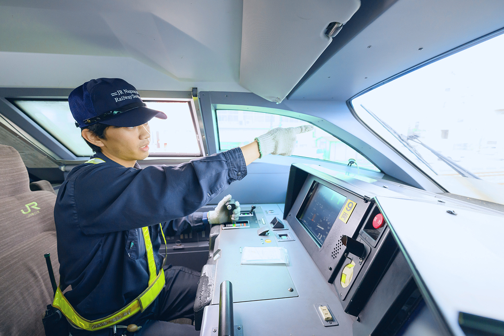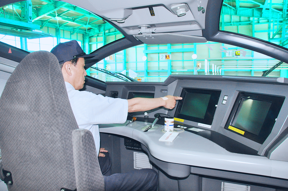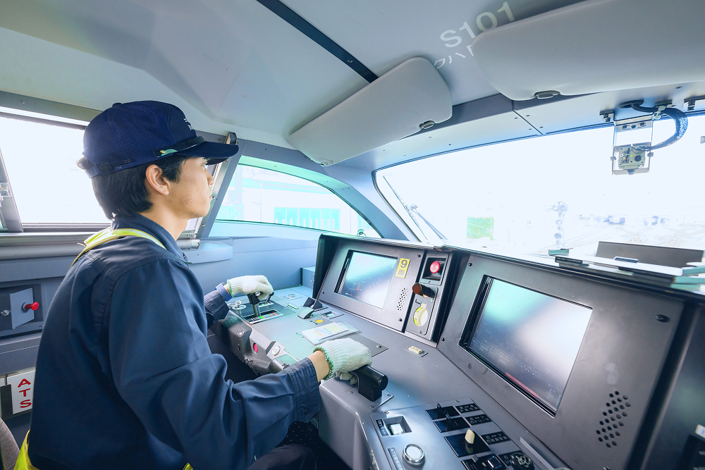 車両運転の安全は、始発から終点までダイヤ通りに運行することに限りません。私たちは、駅のホームや車両センター内で車両移動する構内運転業務(国家資格が必要)を担い、それに伴って映像やモニターで車両を監視する構内信号業務や誘導業務も担当しています。
