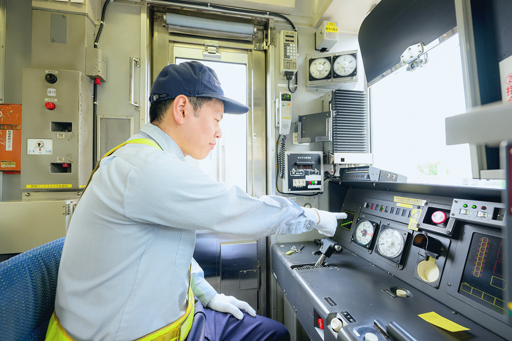 駅のホームや車両基地内で車両を移動する仕事を行っています。