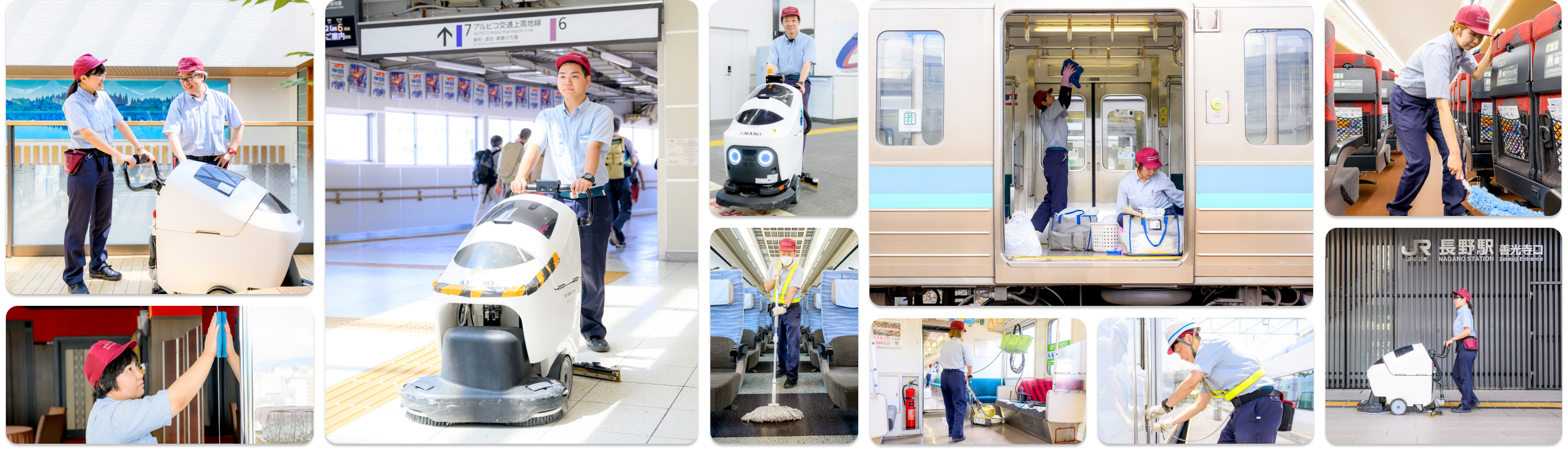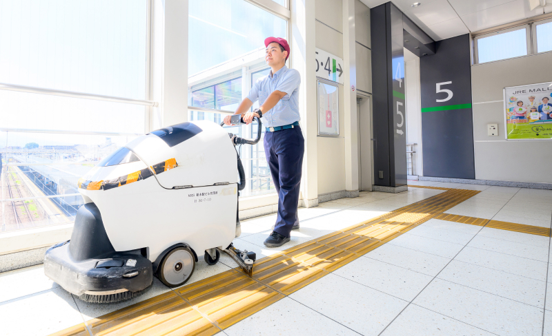 駅ホームの床面や新幹線ホームの安全柵、コンコース、階段等、駅舎内の清掃のほか、「TRAIN SUITE 四季島」が停車する姨捨駅(おばすてえき)では、駅併設のラウンジバーの 維持管理に関する業務も行っています。