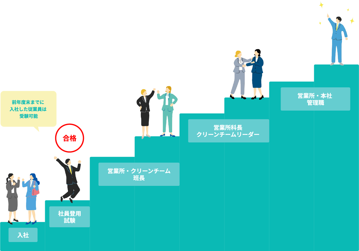 まずは契約社員(準社員)・パートタイマーとして入社いただき、業務に関する理解と知識を深めてください。その後、社員登用試験を合格することで正社員として登用されます。