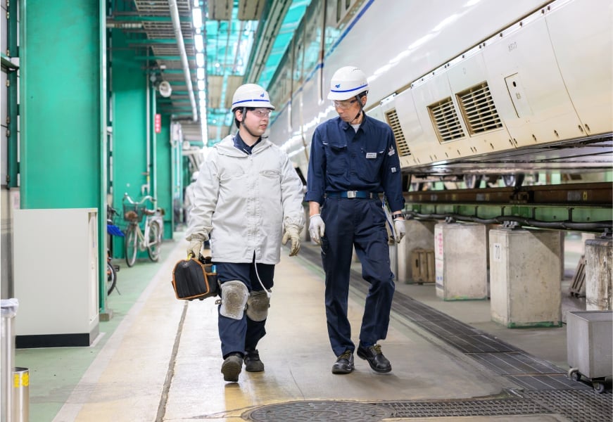 今は入社2年目で、日々の業務を必死にこなすことに集中して、将来のことまで考える余裕はあまりありません。新幹線の中で普通車の整備を行っていますが、グリーン車やグランクロスなどはまだ未経験です。今後こうした車両にも対応できるよう、研修を積極的に受け、必要な技術や知識を身につけていきたいと思っています。仕事の幅を少しでも早く広げていきたいですね。